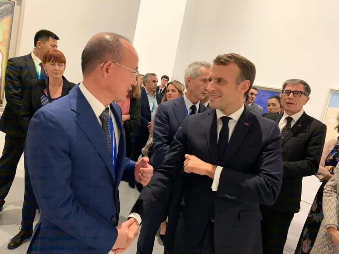 11月5日下午,复星国际董事长郭广昌出席法国总统马克龙在上海举行的蓬皮杜艺术中心西岸艺术展揭幕仪式,与总统夫妇友好交流。