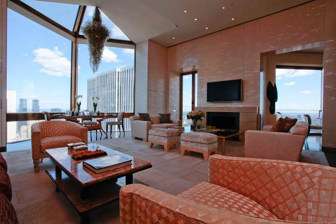以豆豆娃(Beanie Baby)大亨、该酒店所有者的名字命名的泰•沃纳顶楼套房(Ty Warner Penthouse)是拉斯维加斯(在这个赌博之都,豪赌者通常都会获赠客房住宿,因此这里是美国重要的酒店业地区)之外美国最昂贵的酒店客房。这间套房可以从各个角度将曼哈顿的景色尽收眼底,浴室水槽是由透明水晶砖砌成的,还有一名一天24小时随叫随到的私人管家。客人拥有一辆迈巴赫(Maybach)或劳斯莱斯(Rolls-Royce)的使用权──当然,车上配有司机。住宿价格含酒店餐厅提供的客房送餐服务,包括由名厨若埃尔•罗比雄(Joel Robuchon)主理的餐厅,而且几乎是无限量的(但若要点鱼子酱,每位客人需加收1,000美元)。