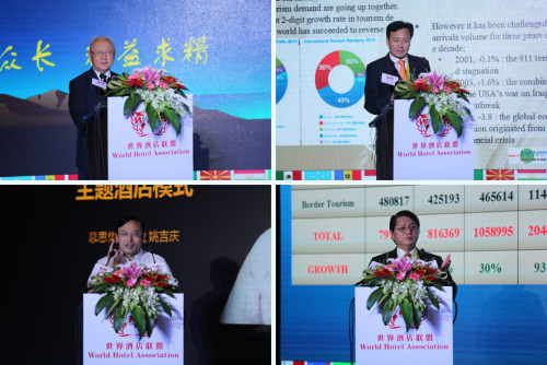 本届大会(论坛)的主题为“世界酒店业发展的竞争与融合”。为期两天的行业盛会汇聚了世界酒店业的顶级领袖人物以及相关行业的重要政府领导,进行了一场关于酒店业发展的观点与思想的碰撞盛会。17日上午,第四届世界酒店联盟大会暨第八届世界酒店论坛在世界旅游组织、中国、瑞士、意大利、印度等国家旅游部(署、局)及行业协会高官的致辞中拉开序幕,联盟主席团成员集体亮相共同见证了开幕仪式,CCTV-发现之旅、京都世纪影视文化有限公司、温德姆国际酒店集团等知名企业和重要机构同世界酒店联盟发布并签订了合作文本。下午的主报告会中,联盟大会的领导发表了振奋人心的致辞,有关国家代表也发表了精彩的演讲。值得一提的是,中国旅游研究院院长、博士生导师、教授戴斌,世界酒店联盟顾问、联盟专家与学术委员会主席、中国社科院旅游研究中心创始人、名誉主任张广瑞,世界酒店联盟顾问、中国国家旅游局原综合司司长张坚钟,慕思集团总裁、中国酒店供应商五星联盟会长姚吉庆,韩国旅游观光协会副会长、世界酒店联盟副主席崔硕浩,缅甸国家旅游联合会副主席、世界酒店联盟副主席貌貌瑞,美国弗罗里达大学酒店管理学院研究生部主任、世界酒店联盟驻美秘书长赵金林以及俄罗斯、意大利、瑞士、希腊等国家旅游部(署、局)驻中国首席代表等二十多位中外业界顶级专家或权威学者同与会者分享了极具价值的理论和思想成果。
