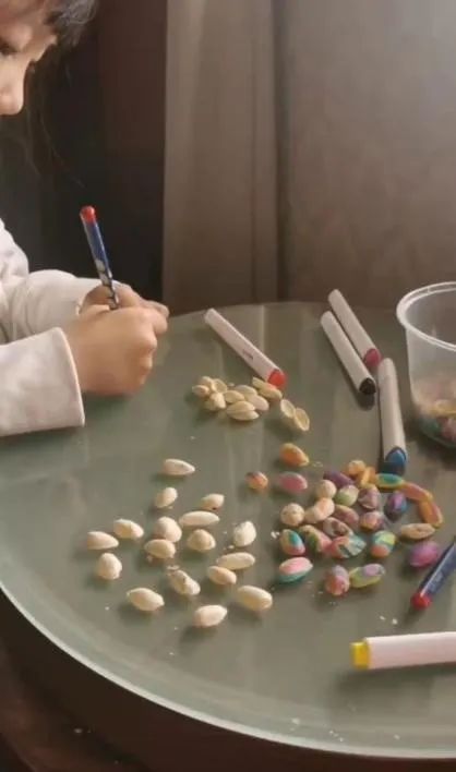 小朋友在开心果上画画