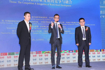 在这方面,我和我们的联盟主席团的有关领导和我们几位的主席、副主席,我们紧急磋商沟通的时候,也获得了整个主席团的高度认可。因为温德姆酒店集团确实是大,他们在谈协议的时候是一定要报到美国,而且还要走一个流程,尽管这件事已经定下来了,但是我们到今天为止协议还没拿到手。所以,我们在会议上进行一个创新。让我们两个发表一些感言。