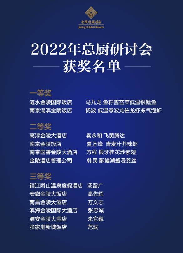 (2022年8月23日 南京)为进一步加强金陵连锁酒店厨师团队沟通交流,不断提高成员酒店餐饮烹饪水平,2022年8月17至18日,金陵连锁酒店厨房管理研讨会在金陵连锁酒店旗下高淳金陵大酒店成功举办。本次研讨会为期两天,金陵酒店管理公司总裁李成勇、副总裁管惠俊、金陵饭店股份有限公司高级顾问花惠生及来自成员酒店的总经理、副总经理、餐饮总监、行政总厨等共70余人参加。