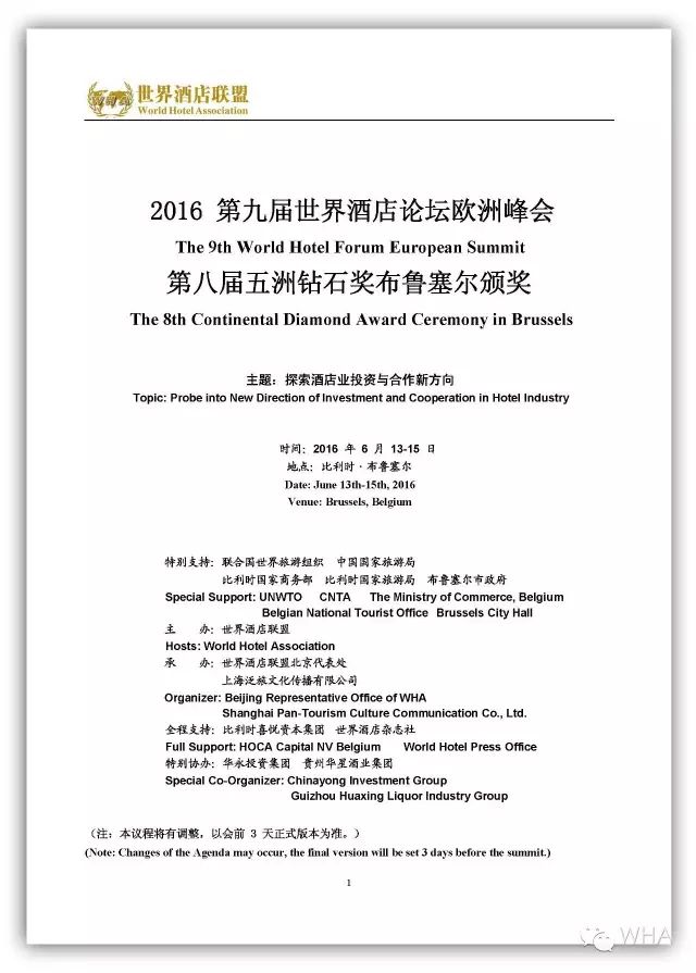 【重磅】新鲜出炉——第九届世界酒店论坛欧