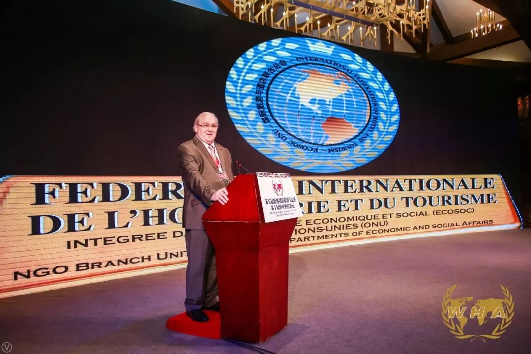 国际旅游与酒店联合总会创始人、主席多米尼克,创始人、执行主席吴军林;秘书长露雅娜(法国)、杨晏(中国)、赵金林(美国)。